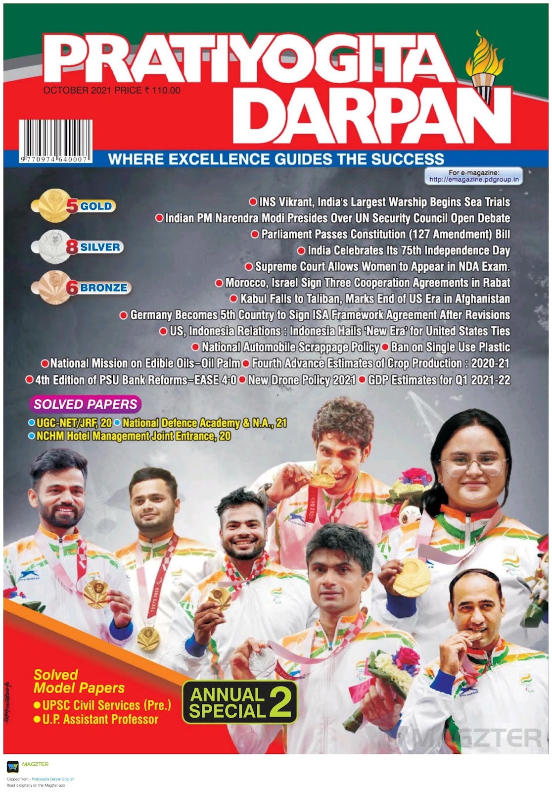 Friends, here you can download PDF of Pratiyogita Darpan, August, September, October, November, December 2021 from here absolutely free in English.